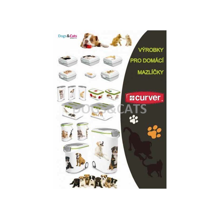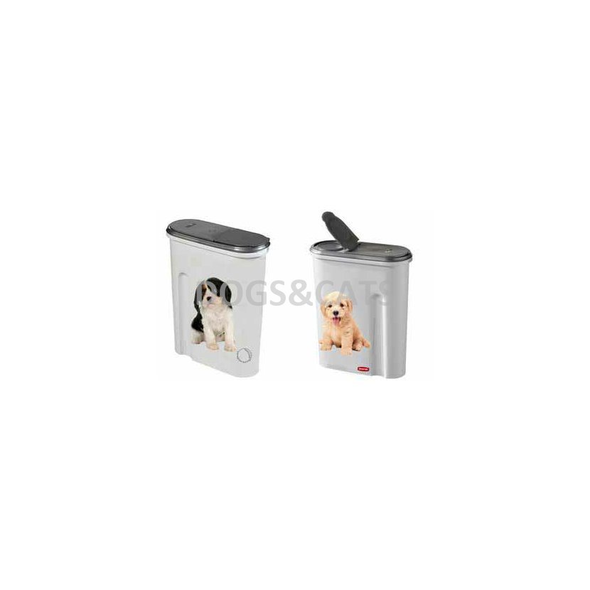 Curver zásobník je z polypropylenu s moderním designem v bílo-stříbrném provedení s motivem psů, motiv potisku se může lišit.
