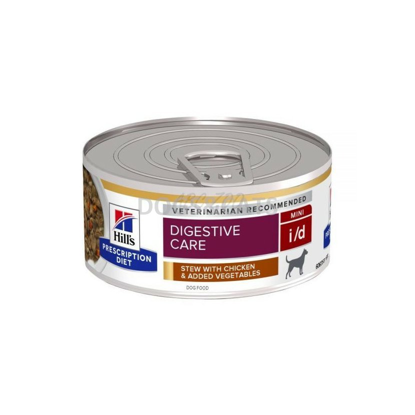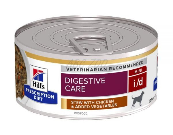 Hill’s PRESCRIPTION DIET i/d Stew krmivo pro psy s kuřetem a přidanou zeleninou je vysoce stravitelné kompletní dietetické krmivo k omezení střevních resorpčních onemocnění, ke kompenzaci maldigesce a exokrinní pankreatické nedostatečnosti u psů. Toto krmivo má zvýšenou hladinu sodíku a draslíku a vysoce stravitelné ingredience. Toto krmivo v konzervách má formu chutných, správně velkých kousků ve šťávě a obsahuje prospěšné složky, jako je kuře a zelenina, které psi milují.