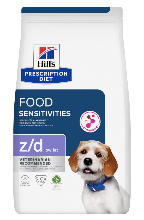 Hill's PRESCRIPTION DIET z/d Low Fat krmivo pro psy s hydrolyzovanou sójou je kompletní dietetické krmivo pro omezení nesnášenlivosti určitých ingrediencí a živin u dospělých psů. Toto krmivo obsahuje vybraný zdroj sacharidů a zdroj hydrolyzovaných bílkovin.
