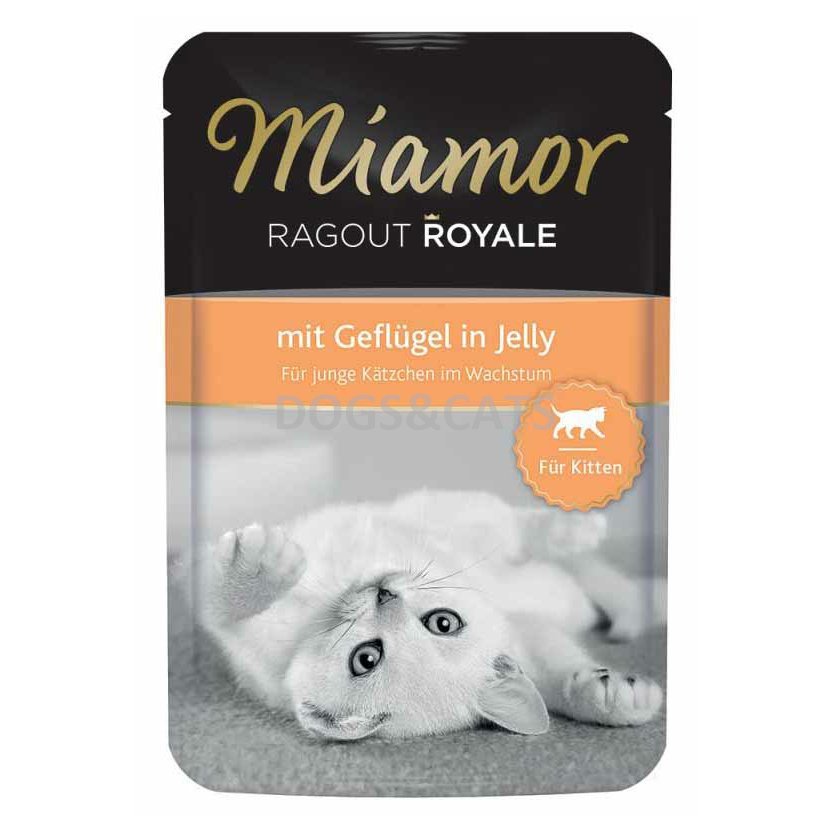 Miamor Ragout Junior je lahodné ragú, kompletní krmivo, pro koťata z jemných kousků drůbežího masa v delikátním rosolu. Má vysoký podíl živočišných proteinů, vyšší obsah energie pro zvláštní potřeby výživy v růstové fázi a je vyrobeno procesem, který zachovává maximum vitamínů. Zároveň neobsahuje žádná umělá barviva či konzervanty.