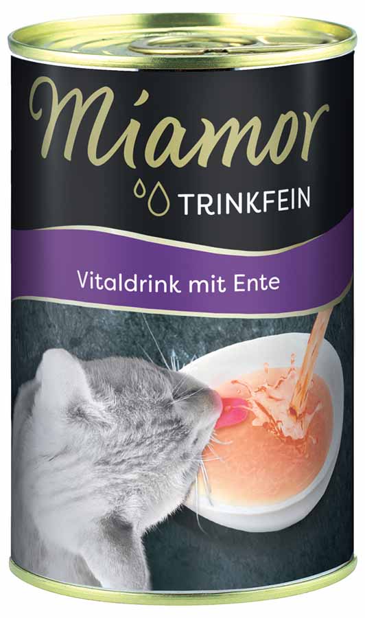 Vitální nápoj pro kočky s kachním masem. Šťáva s nejkvalitnějšími kusy masa pro zvýšení příjmu tekutin u koček. Kočky, které nepřijímají dostatek tekutin jsou náchylnější k močovým kamínkům (to platí zejména, pokud jsou kočky krmeny suchým krmivem). Proto Miamor Trinkfein je skvělé spojení krmiva i tekutin současně.