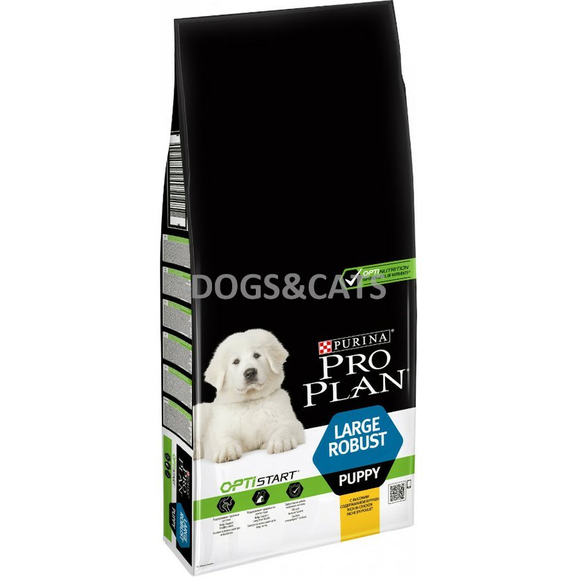 Purina ProPlan Large Puppy Robust s OPTISTART je krmivo s vysokým obsahem kuřecího masa určené pro štěňata velkých plemen robustního typu (nad 25 kg v dospělosti) a také pro březí a kojící feny.