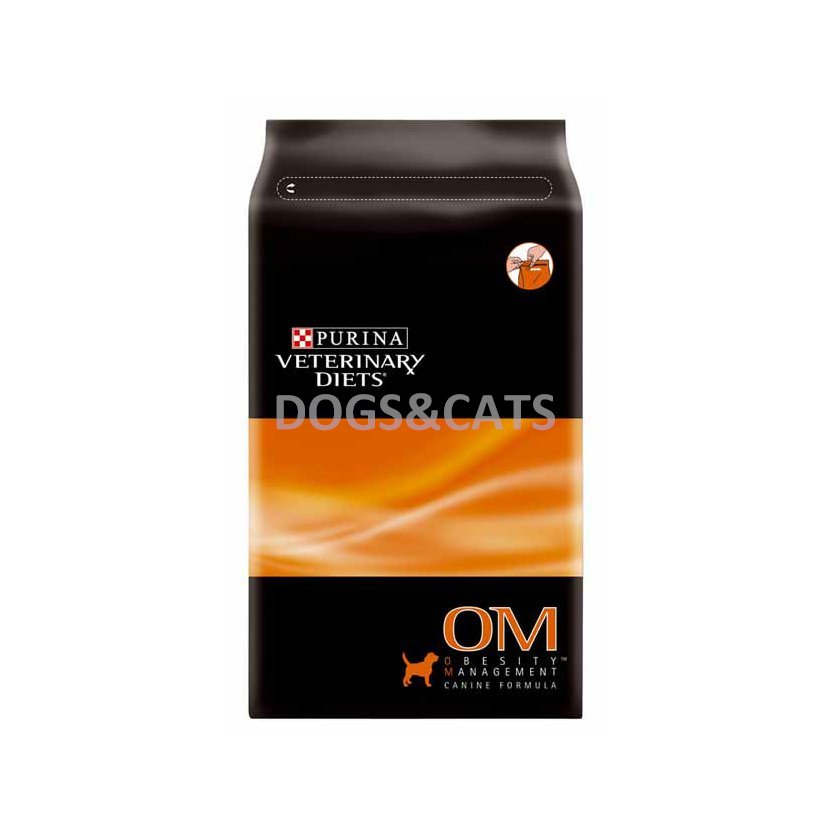 Psi udržovaní fit a v kondici žijí déle než psi s nadváhou. Purina Obesity Management má nízký obsah tuku a kalorií při současně vysokém obsahu bílkovin pro podporu účinného hubnutí při zachování svalové hmoty a udržení pocitu sytosti. Po dosažení ideální tělesné hmotnosti může být psovi dále podáváno dietní krmivo Canine OM Obesity Management pro pomoc při jejím udržení. Dietní krmivo Canine OM Obesity Management není určeno pro psy, kteří potřebují vyšší příjem kalorií, jako jsou březí feny, rostoucí štěňata, popř. pro psy s onemocněním spojeným s hyperkatabolickými stavy (chronické selhání ledvin ve stadiu 3 a 4, pokročilé srdeční selhání).