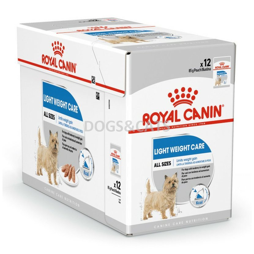 ROYAL CANIN® Light Weight Care Loaf je vhodné pro psy všech velikostí, kteří mají sklon přibírat. Toto extra chutné krmivo, bohaté na vysoce stravitelné bílkoviny, pomáhá vašemu psovi udržovat zdravou svalovou hmotu a má snížený obsah tuku a kalorií.