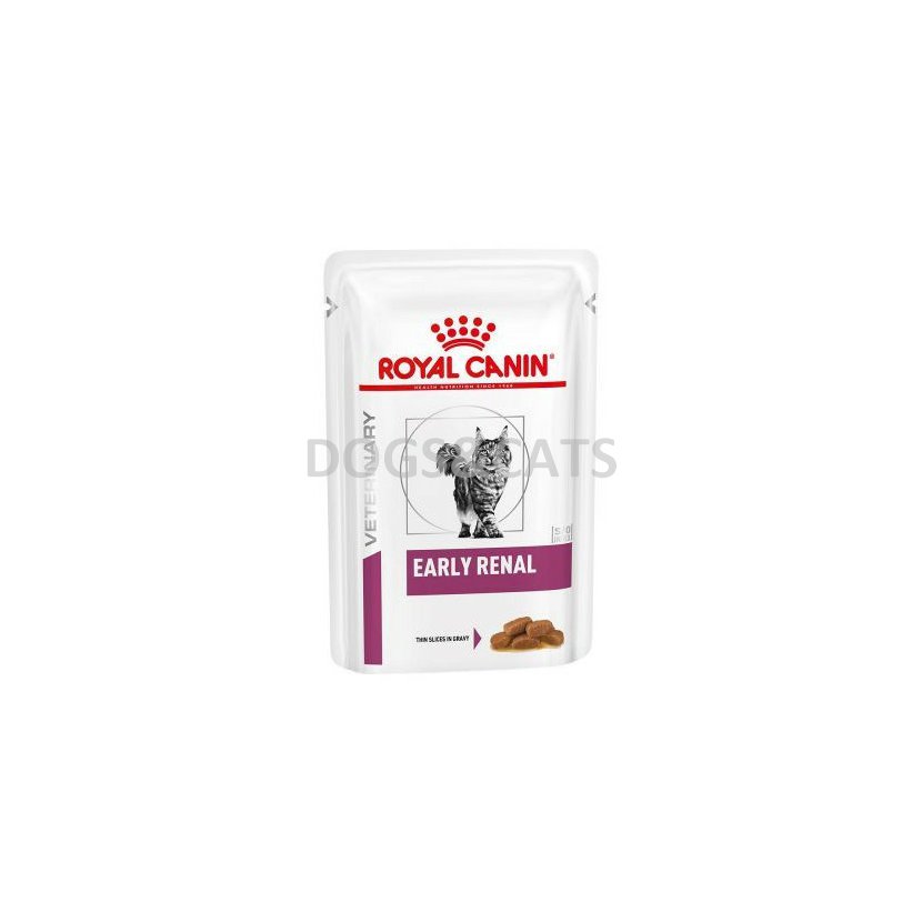 EARLY RENAL tenké kousky ve šťávě je kompletní dietní krmivo pro kočky s recepturou na podporu funkce ledvin v případě chronické ledvinové nedostatečnosti, a to díky nízkému obsahu fosforu a vysoce kvalitních proteinů. Vlhké krmivo s recepturou pro počáteční stádia chronické renální nedostatečnosti.
