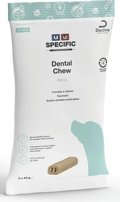 Žvýkací pochoutka pro dospělé psy do 15ti kg podporuje zdraví ústní dutiny. Obsahuje eukalyptový olej, extrakt z brusinek a zeleného čaje. Redukuje zubní plak a osvěžuje dech. Nevhodné pro psy s hypertyreózou.