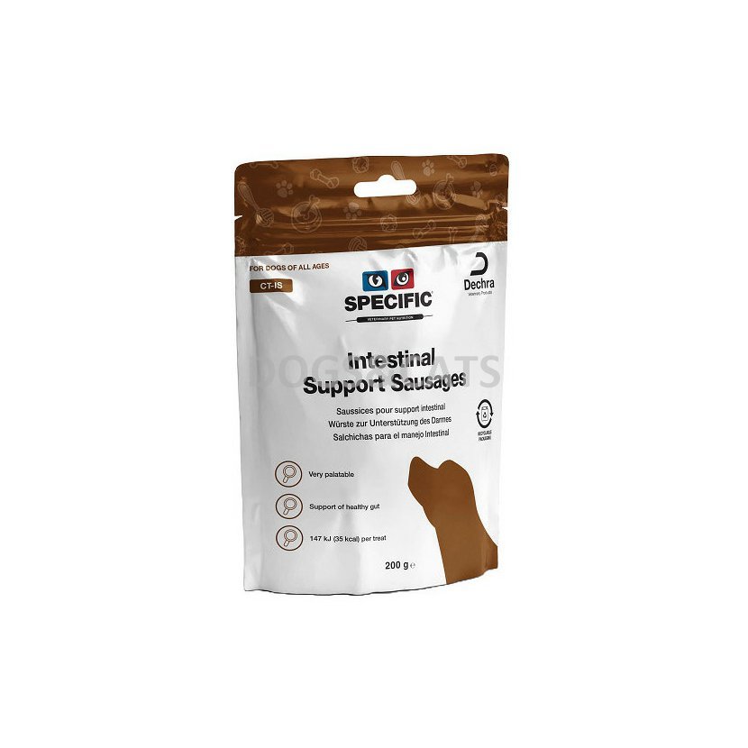 Pamlsek z řady SPECIFIC pro psy všech plemen bez rozdílu věku ve formě klobásek podporující zdraví střev. Pamlsek je vhodný také pro psy s trávicími problémy krmené dietou SPECIFIC™ CID/CIW Digestive Support, kteří mají například tyto problémy: průjem, zvracení, plynatost, EPI, malabsorpci & maldigesci, zánět střeva nebo jsou v období rekonvalescence a další.