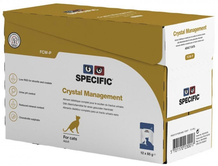Dietní mokré krmivo v kapsičkách pro kočky podporuje rozpouštění struvitových krystalů a prevenci jejich návratu. Obsahuje snížený obsah hořčíku a fosforu, kyselé pH moči a omega-3 mastné kyseliny. Kompletní výživa pro zdraví močových cest.