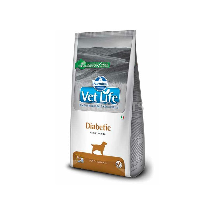 Farmina Vet Life Diabetic je kompletní dietetické krmivo pro dospělé psy určené jako podpora kontrolovaného přísunu glukózy (Diabetes mellitus). Doporučuje se obzvláště pro Diabetes typu 2 a zvyšuje účinek insulinové terapie v případě Daibetu typu 1. Je vhodné také pro snížení tělesné hmotnosti zvířete.